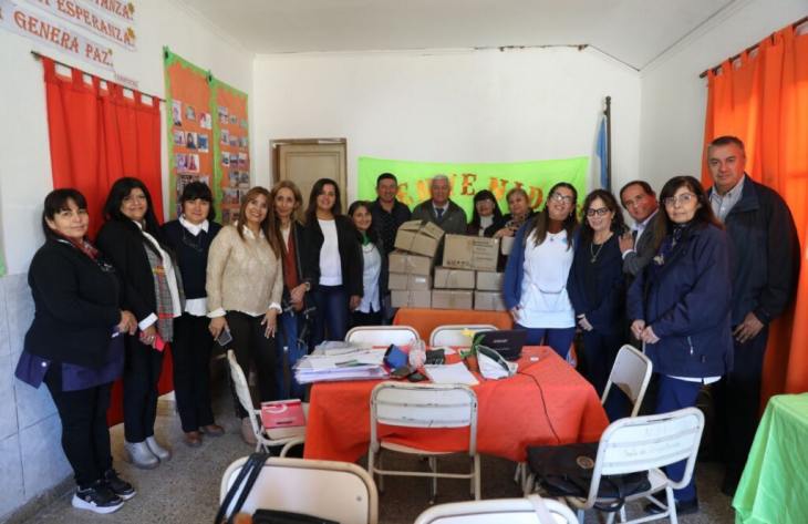 En el marco de la Pedagogía del Cuidado que impulsa la ministra de Educación, Susana Montaldo, autoridades educativas visitaron la localidad de La Madrid para realizar la entrega de delantales a 13 establecimientos educativos de la zona.