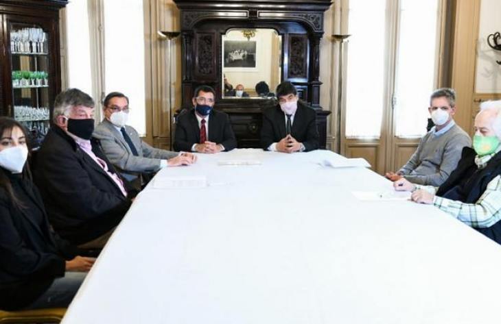 Firmaron el acuerdo, esta mañana en Casa de Gobierno, lo ministros Gabriel Yedlin (Desarrollo Social), Miguel Acevedo (Interior) y Álvaro Simón Padrón (Desarrollo Productivo), en representación del gobernador, Juan Manzur, y los empresarios Lucas Medici, de Cerros Tucumanos Lácteos; representantes de la Compañía de Alimentos Baronesa; Miguel Tarascio, del Frigorífico La Reducción; Jorge Rocchia Ferro, de la Compañía Azucarera Los Balcanes y Enrique Martín, de Jugos Tuin.