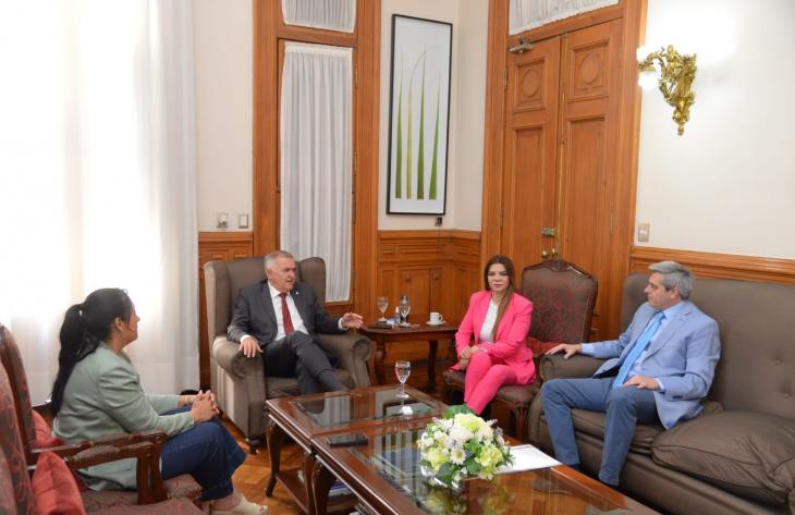 El gobernador, Osvaldo Jaldo, recibió en su despacho de Casa de Gobierno a los diputados nacionales por Tucumán, Agustín Fernández, Elia Fernández y Gladys Medina, para dialogar acerca de la aprobación de la Boleta Única de Papel (BUP) para la emisión del sufragio.