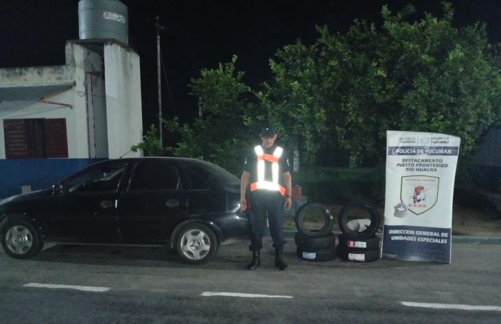 El primero de ellos se registró en el Puesto Fronterizo Río Huacra, donde inspeccionaron un automóvil conducido por un catamarqueño el cual trasladaba ocho cubiertas sin la documentación pertinente por lo que se procedió a su secuestro.