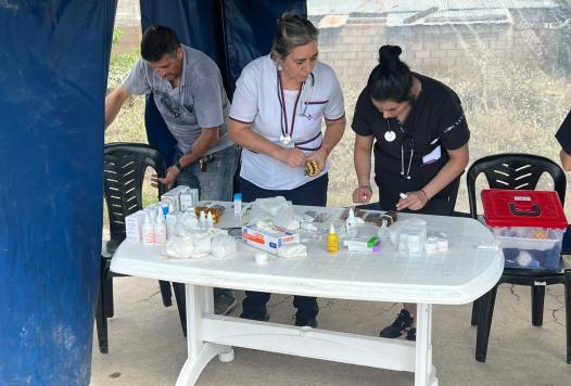 El equipo de salud recorre zonas anegadas, visita carpa por carpa a las personas evacuadas y brinda atención médica, contención emocional y entrega de insumos básicos en localidades afectadas por las intensas lluvias.