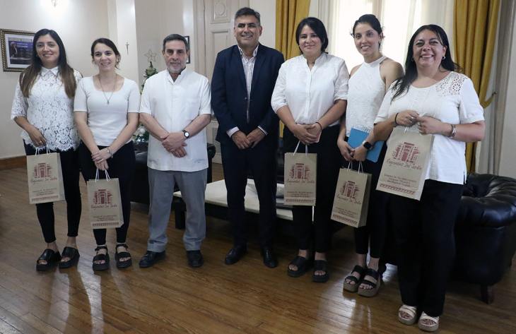 En el marco del Día del Trabajador Social, el ministro de Salud, Luis Medina Ruiz, junto al subsecretario de Salud, Marcelo Montoya, recibió en su despacho a integrantes del equipo social del Ministerio de Salud Pública. Durante el encuentro, destacó la labor diaria que realizan en cada nivel del sistema sanitario y entregó un obsequio institucional como muestra de reconocimiento. Esta acción se inscribe en la política impulsada por el gobernador Osvaldo Jaldo, quien promueve el fortalecimiento y acompañamiento permanente a todos los equipos que integran la salud pública.