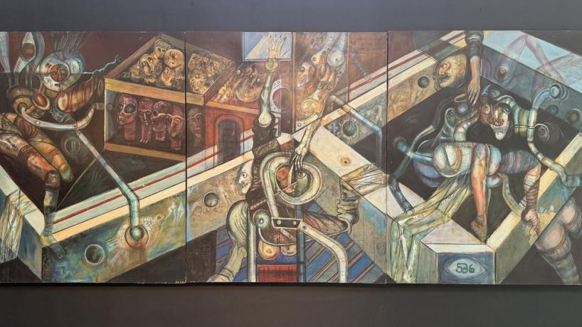 La gente se van a encontrar con la obra monumental y algunas otras series. Básicamente la serie Azul, entre mediados de los 70 y mediados de los 80, acompañada por obras de los 90. Él tenía una profunda reflexión sobre la existencia humana y un enorme cuestionamiento a las contradicciones de su tiempo. Es una obra que no pierde vigencia.
