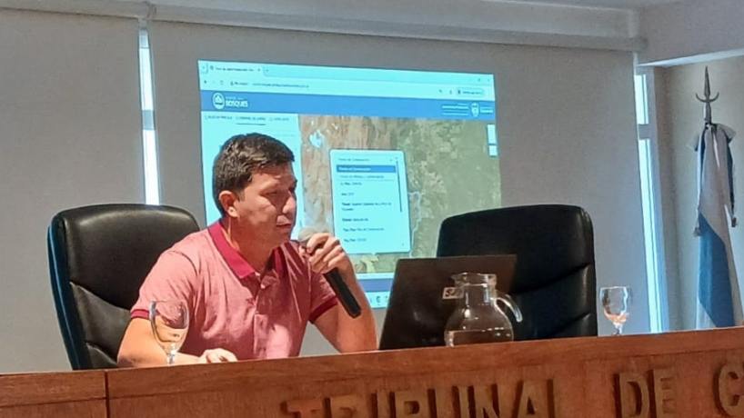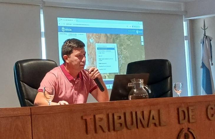 El técnico Augusto Gutiérrez, integrante del equipo RIDES expuso sobre las características del  Visor de Bosques, un proyecto colaborativo entre la Secretaría de Producción, la Fundación ProYungas y Solidaridad, el cual consiste en una herramienta de gestión pública que comunica y facilita el acceso a la información vinculada al proceso de implementación del Ordenamiento Territorial de Bosques Nativos (OTBN) de la provincia de Tucumán.
