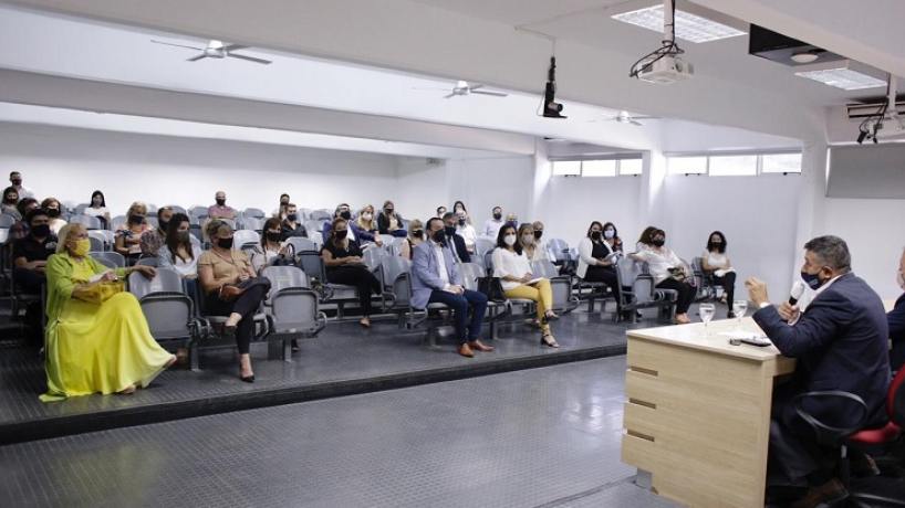 En este sentido, se llevó adelante en el Centro de Innovación una reunión de la que participaron la secretaria de Gestión Educativa, Isabel Amate Pérez:; el secretario de Bienestar Educativo, Marcelo Romero; junto a secretarios, subsecretarios, referentes de Educación y directores municipales para articular acciones en cuanto a las tareas de aprestamiento que se están realizando en los edificios escolares, como así también, la presentación del protocolo pedagógico para el inicio de clases.