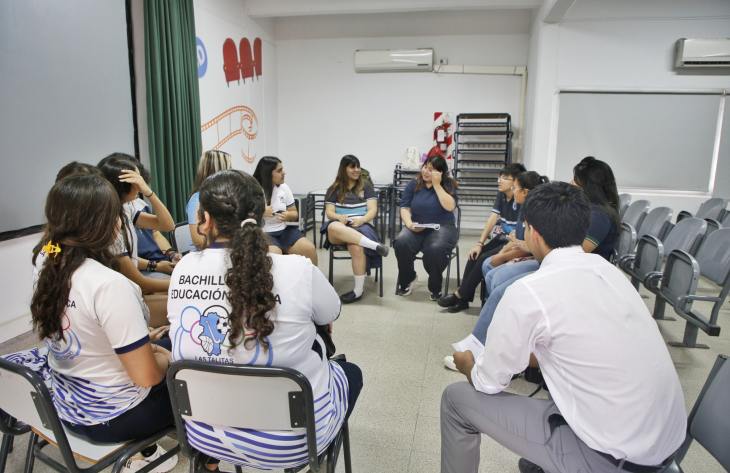 A su vez, Melisa Alfaro, de la Dirección de Educación Secundaria, referente de convivencia y participación estudiantil, comentó sobre el proyecto: "Es ambicioso porque es muy rico y potente, porque estamos recuperando voces de todos los actores a lo largo de la provincia, docentes, estudiantes, supervisores, directores, porque ya tuvimos también un encuentro con supervisores y supervisoras de la provincia. Y ahora queda sistematizar todo lo que vamos recabando, tanto de registro escrito como también de registros que son digitales. Así que es bastante grande el objetivo de transformar la escuela".