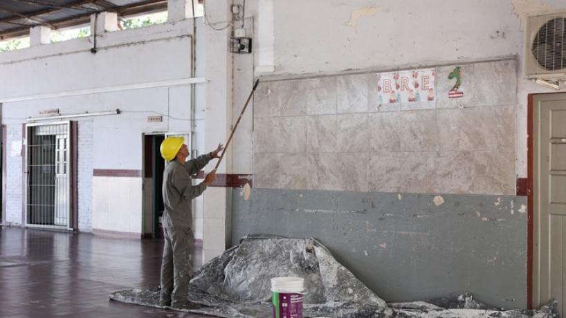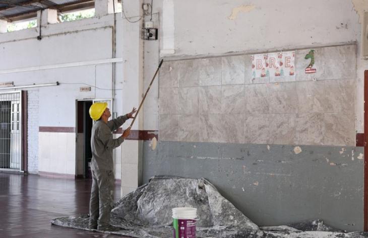 Mientras que durante el año 2025 las refacciones se concentraron en el exterior del edificio, la etapa actual pone el foco en las necesidades internas. Los trabajos incluyen pintura, albañilería y desmalezamiento de los predios escolares.
