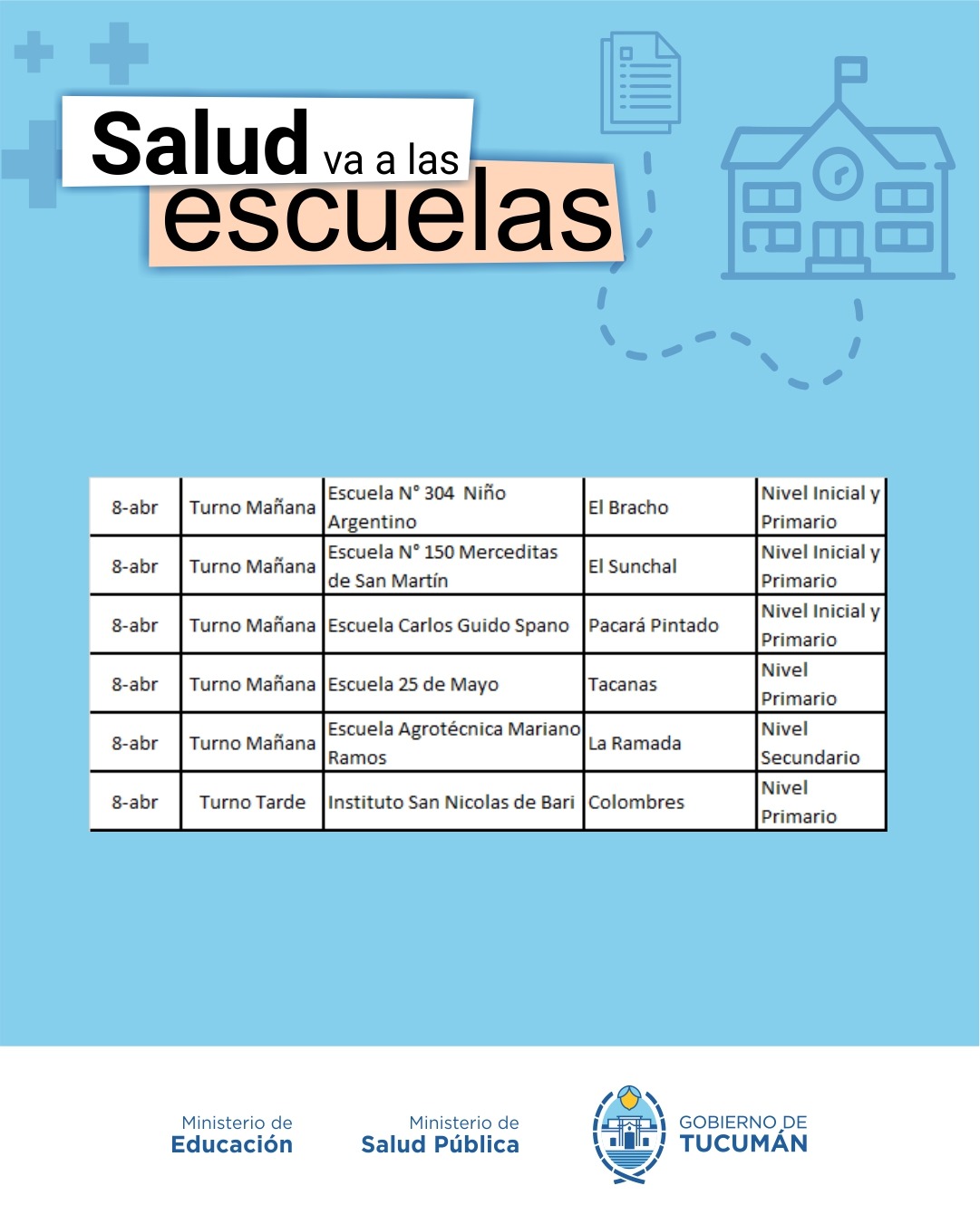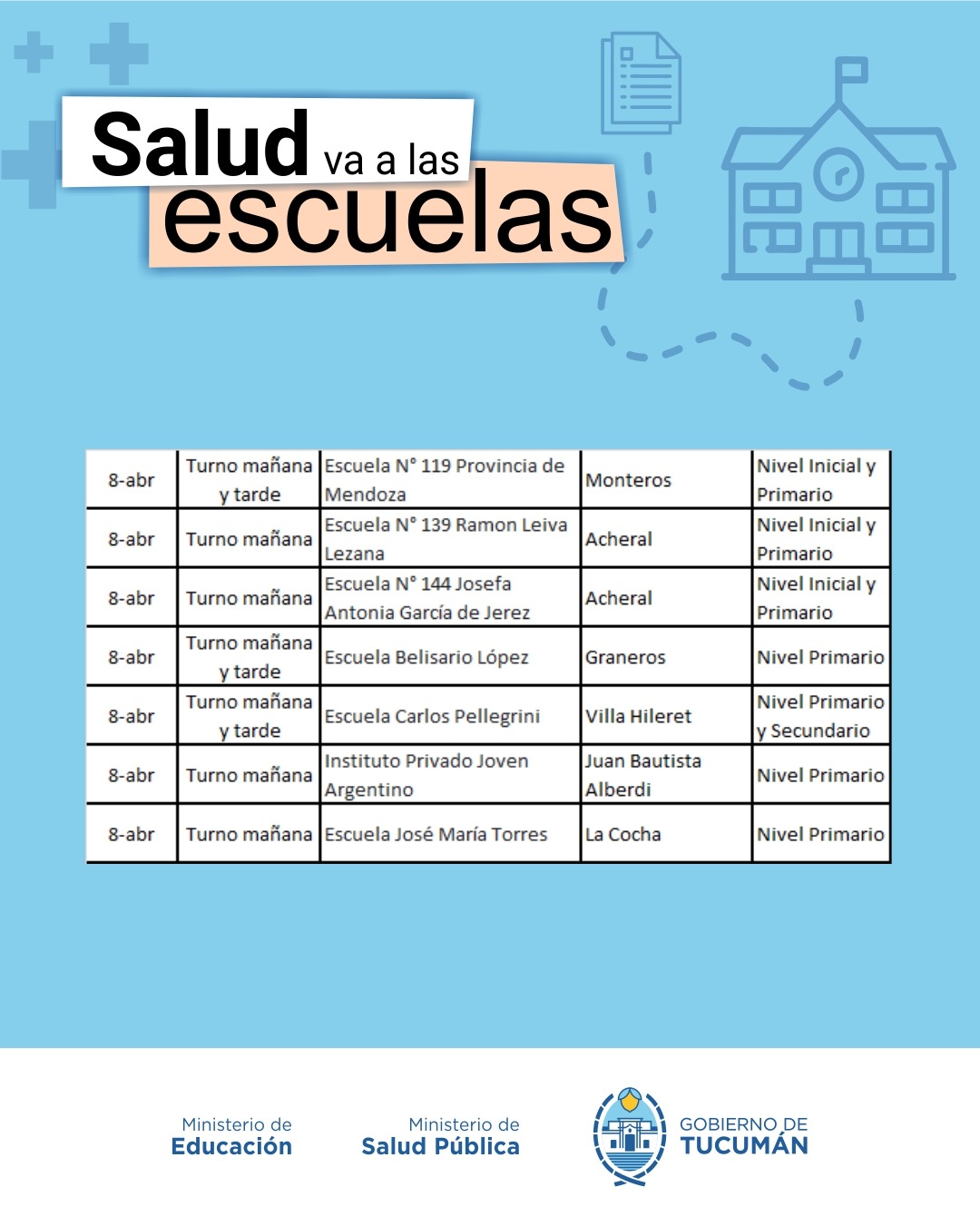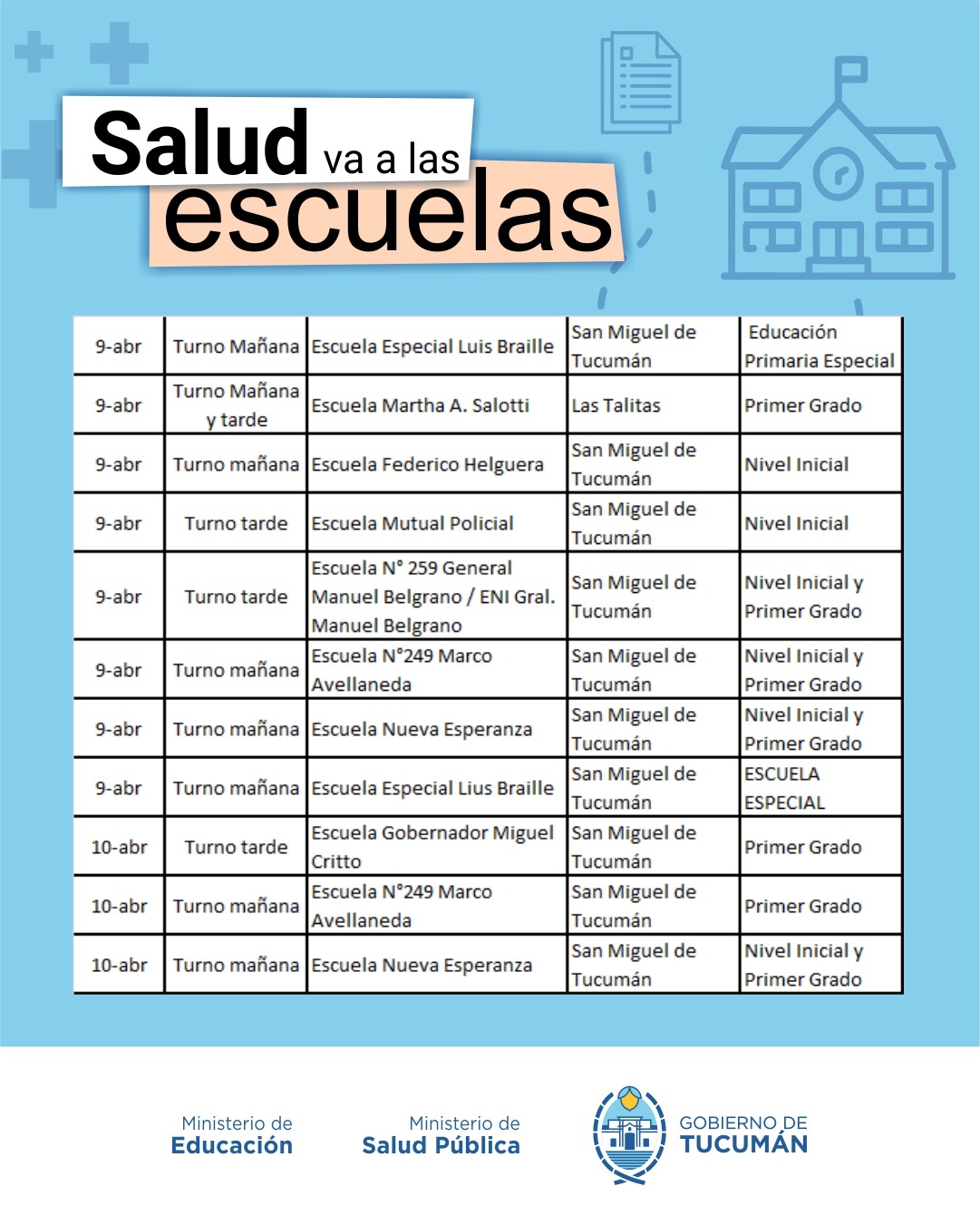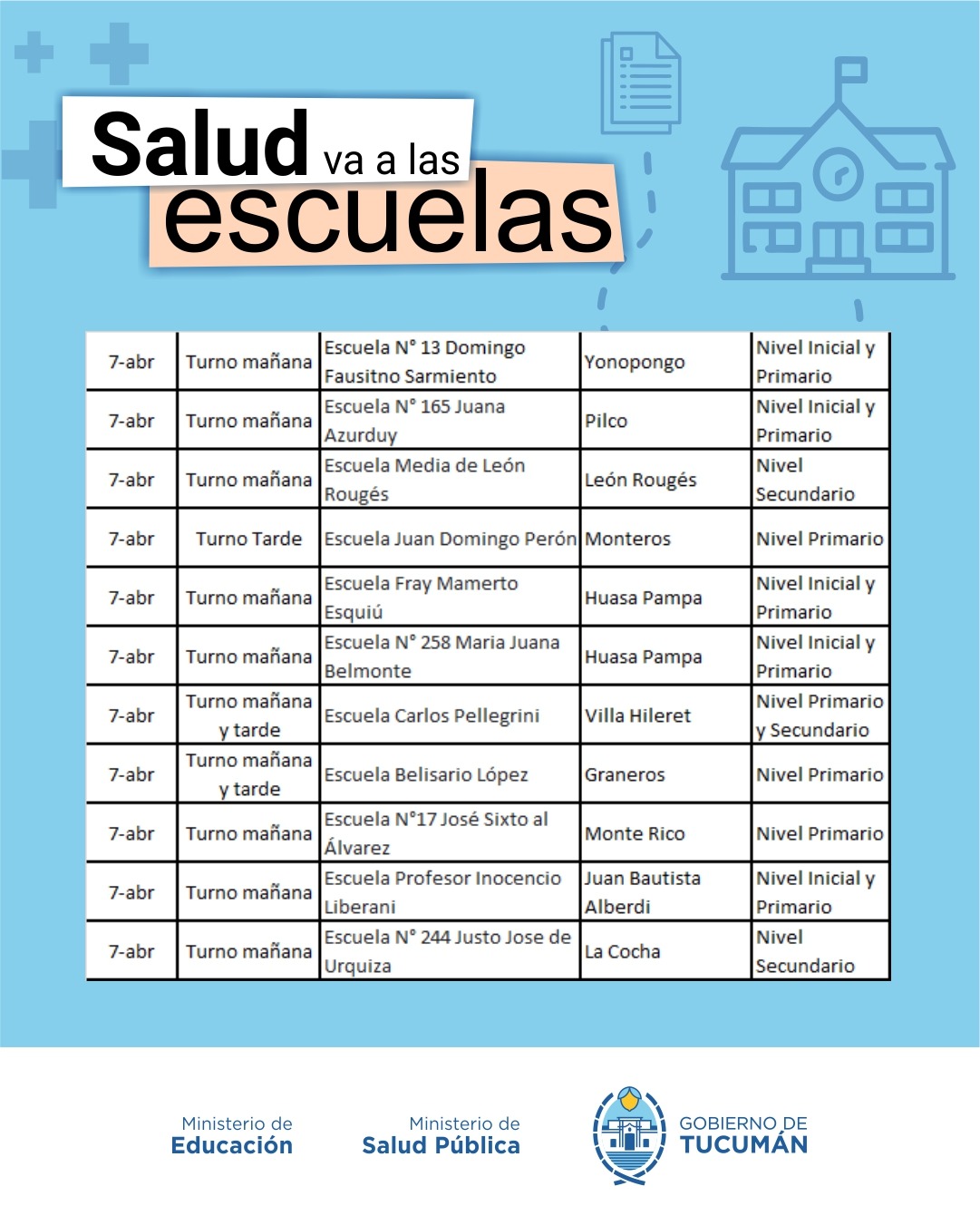 El operativo es organizado de manera conjunta entre el Ministerio de Salud y el Ministerio de Educación, y recorrerá todas las escuelas públicas tanto de la Capital como del Interior de la provincia.
