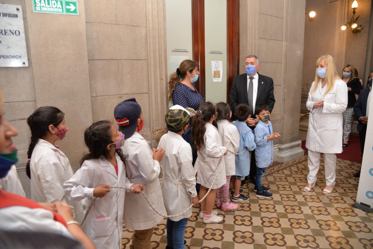 El contingente educativo estaba compuesto por 109 niños del nivel inicial y hasta sexto grado de la Escuela N°56 Bandera Argentina de la localidad San Miguelito del departamento Cruz Alta, que además de visitar el palacio gubernamental, conocerán el Teatro Mercedes Sosa, Casa Histórica y terminarán la jornada con actividades recreativas en el Complejo del Sindicato Único de Trabajadores de Edificios de Renta y Horizontal (S.U.T.E.R.H) de El Cadillal.
