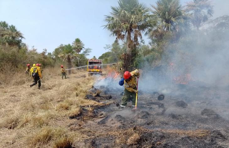 Personal de Bomberos y Defensa Civil continúa trabajando para mitigar los incendios en Corrientes. La comitiva integrada por 10 personas viajó el fin de semana y desde entonces trabaja para ayudar en la emergencia, por decisión del gobernador, Osvaldo Jaldo.