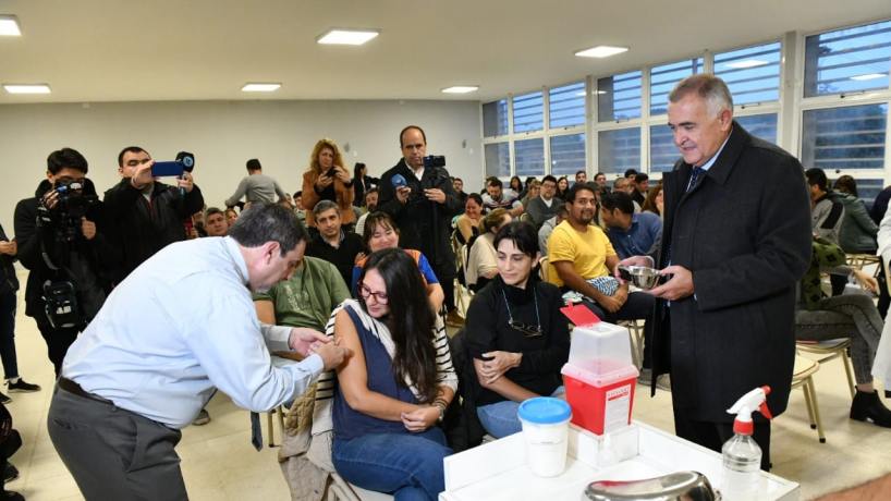 El gobernador Osvaldo Jaldo participó esta mañana de la campaña de vacunación conta el Dengue, donde esta vez comenzó con otro sector esencial, como son los docentes y personal auxiliar del área.
