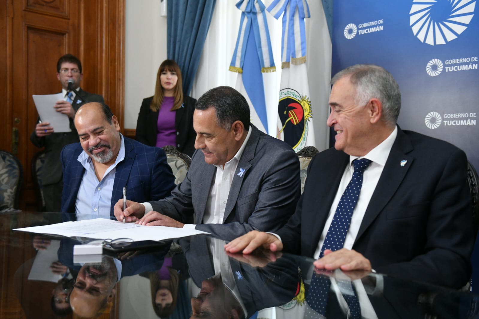 Cabe destacar que de los actos también participaron el secretario de Gobierno y Relaciones Institucionales, Raúl Albarracín; y el secretario de Acción Política y Comunitaria, Daniel García. Además, en la firma del acuerdo con el Frente de Gremios Estatales y Municipales, estuvo el intendente de Trancas, Antonio Moreno.