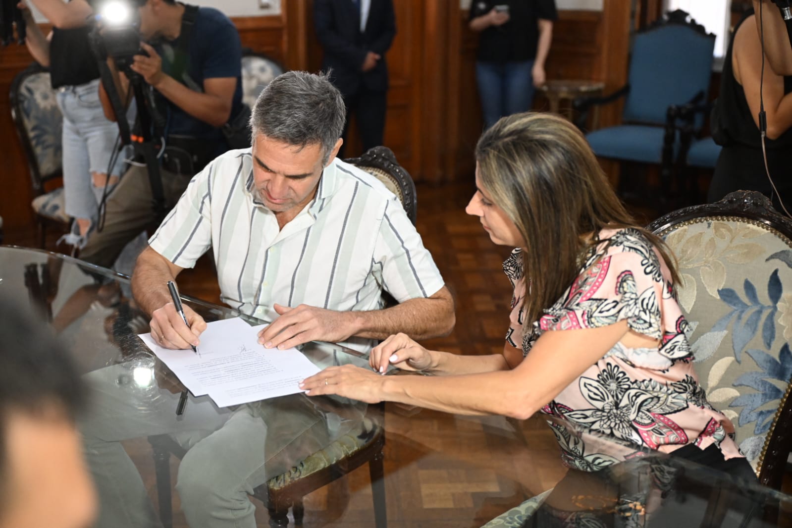 Acevedo estuvo acompañado por el ministro de Obras, Infraestructura y Transporte Público, Marcelo Nazur; el secretario general de la Gobernación, Federico Nazur, la Fiscal de Estado, Gilda Pedicone de Valls y el apoderado de la Terminal, Ariel Spector. Además, estuvieron las escribanas Olga Inés Navarro, a cargo de Registro de Gobierno, y María Josefina Jaeggy Nores, escribana adscripta.
