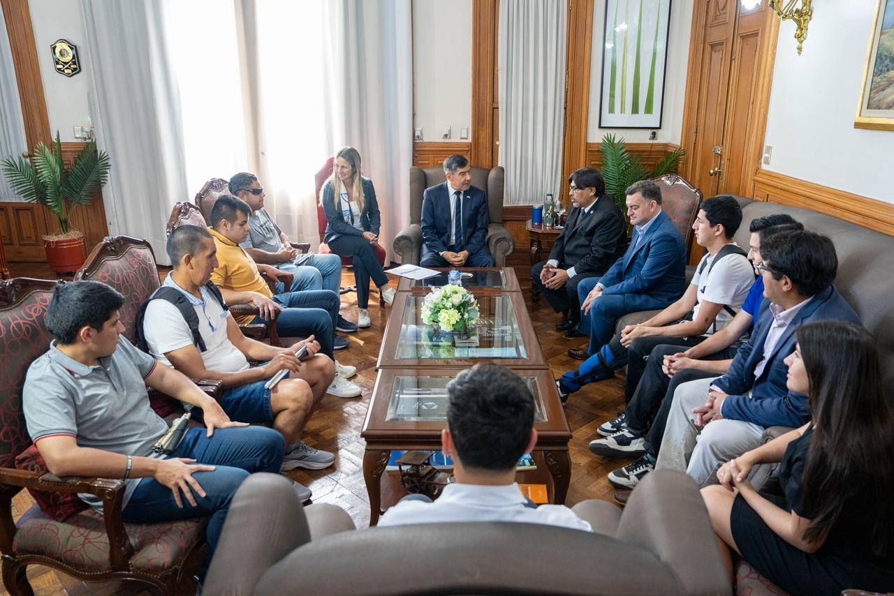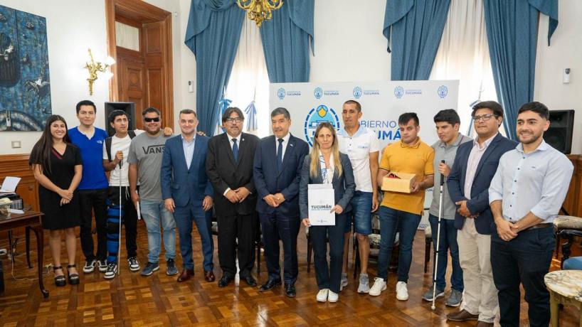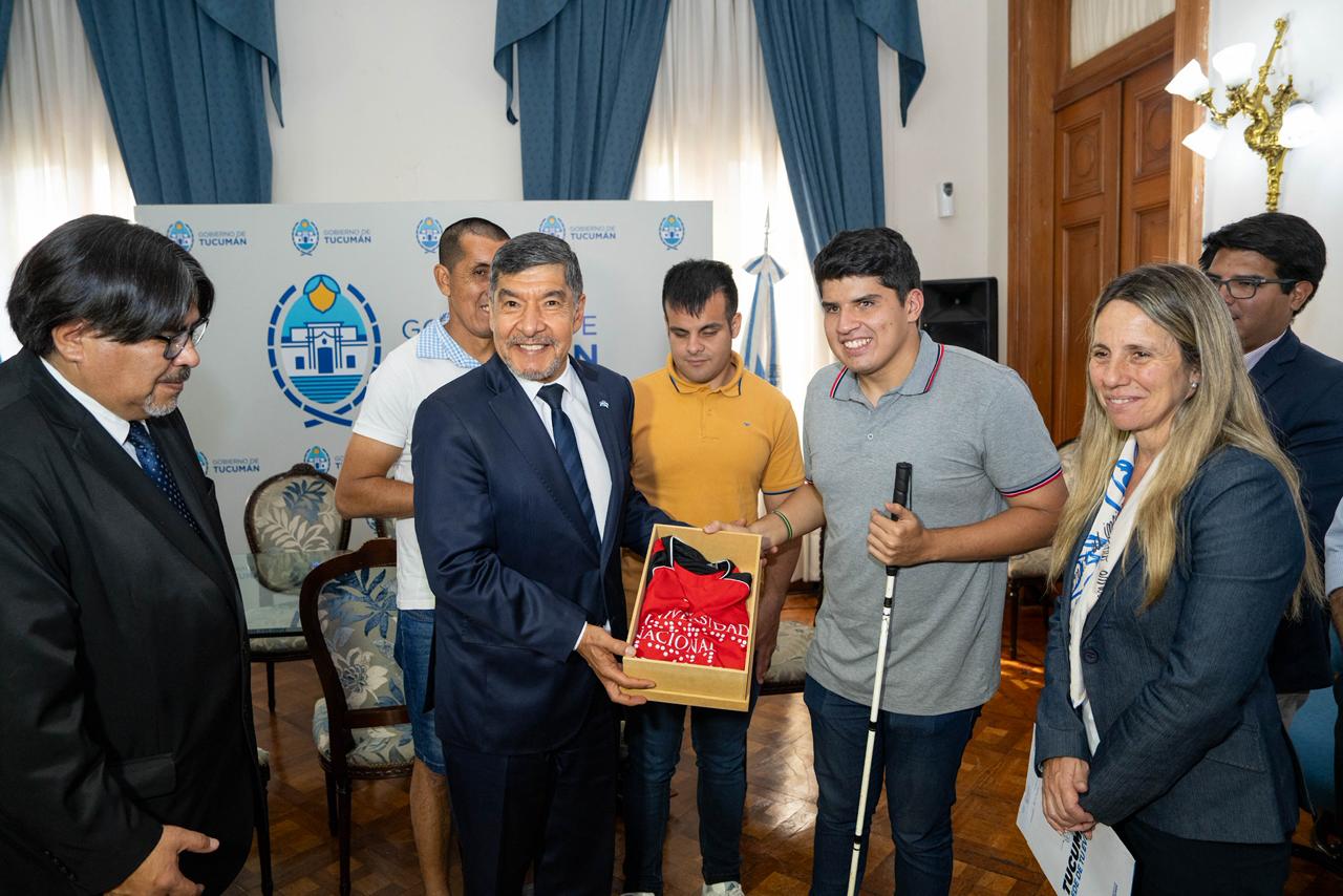 Durante la ceremonia, desarrollada en Casa de Gobierno, Acevedo recibió en su despacho al secretario de Gobierno y Relaciones Institucionales, Raúl Albarracín; a la vicepresidenta del Ente Tucumán Turismo, Inés Frías Silva; a la subsecretaria de Gobierno, Katherina Mazzucco; al director de Discapacidad e Inclusión Social de la UNT (DISUNT), Darío Mamani, y a los deportistas que representarán a la provincia en el certamen.