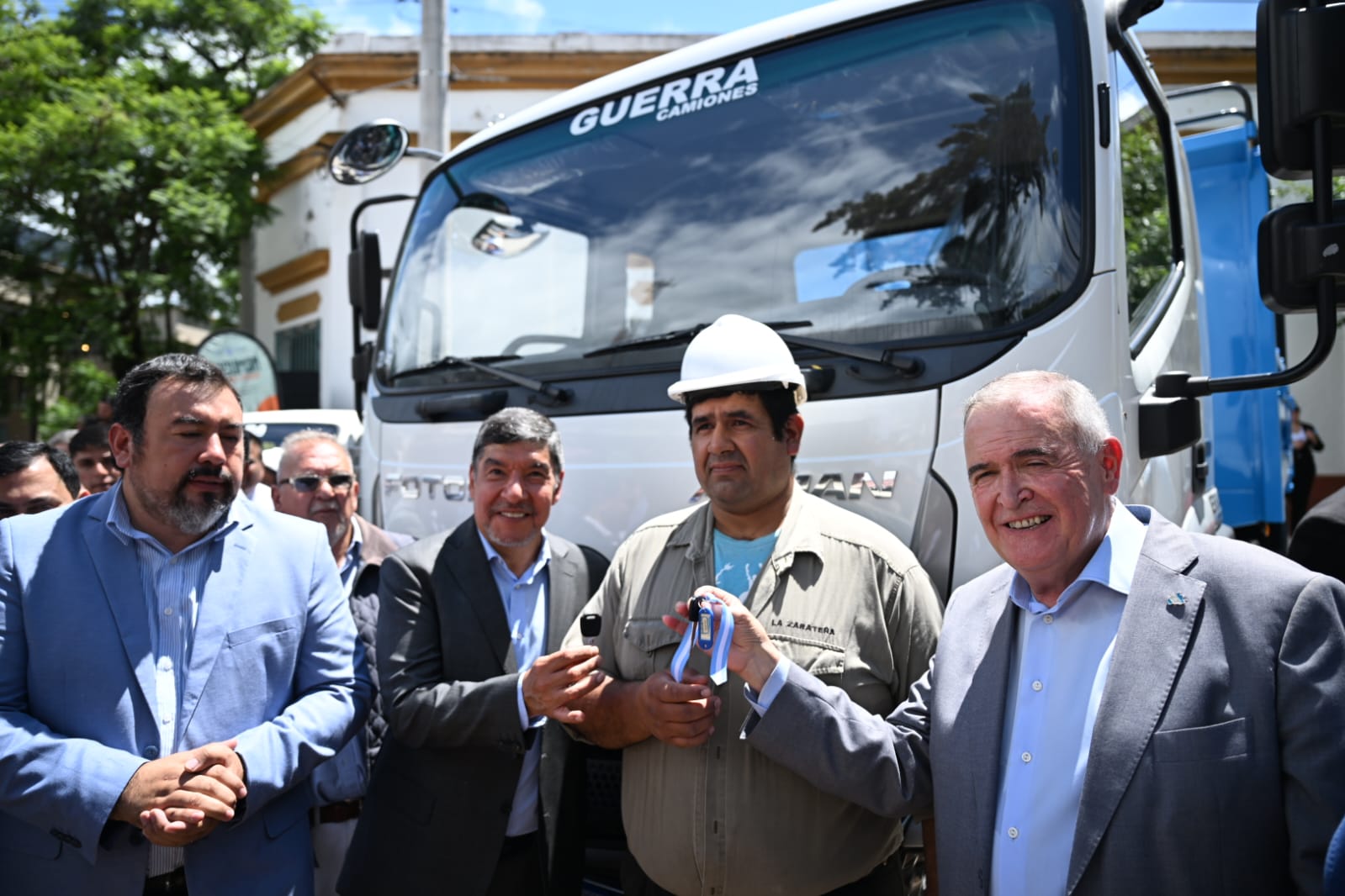 El jefe del Poder Ejecutivo entregó un camión con caja volcadora para usos múltiples y un vehículo utilitario doble cabina para tareas de mantenimiento del alumbrado público.