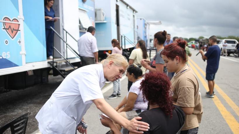 El operativo también contó con la participación de fuerzas de seguridad y equipos sanitarios para asistir a la población. Imbert destacó el trabajo coordinado de los organismos provinciales. “Las fuerzas policiales y el Siprosa acompañan con un hospital móvil que brinda atención en el lugar y responde a las necesidades de la población que permanece en la zona o llega desde localidades vecinas”, explicó.