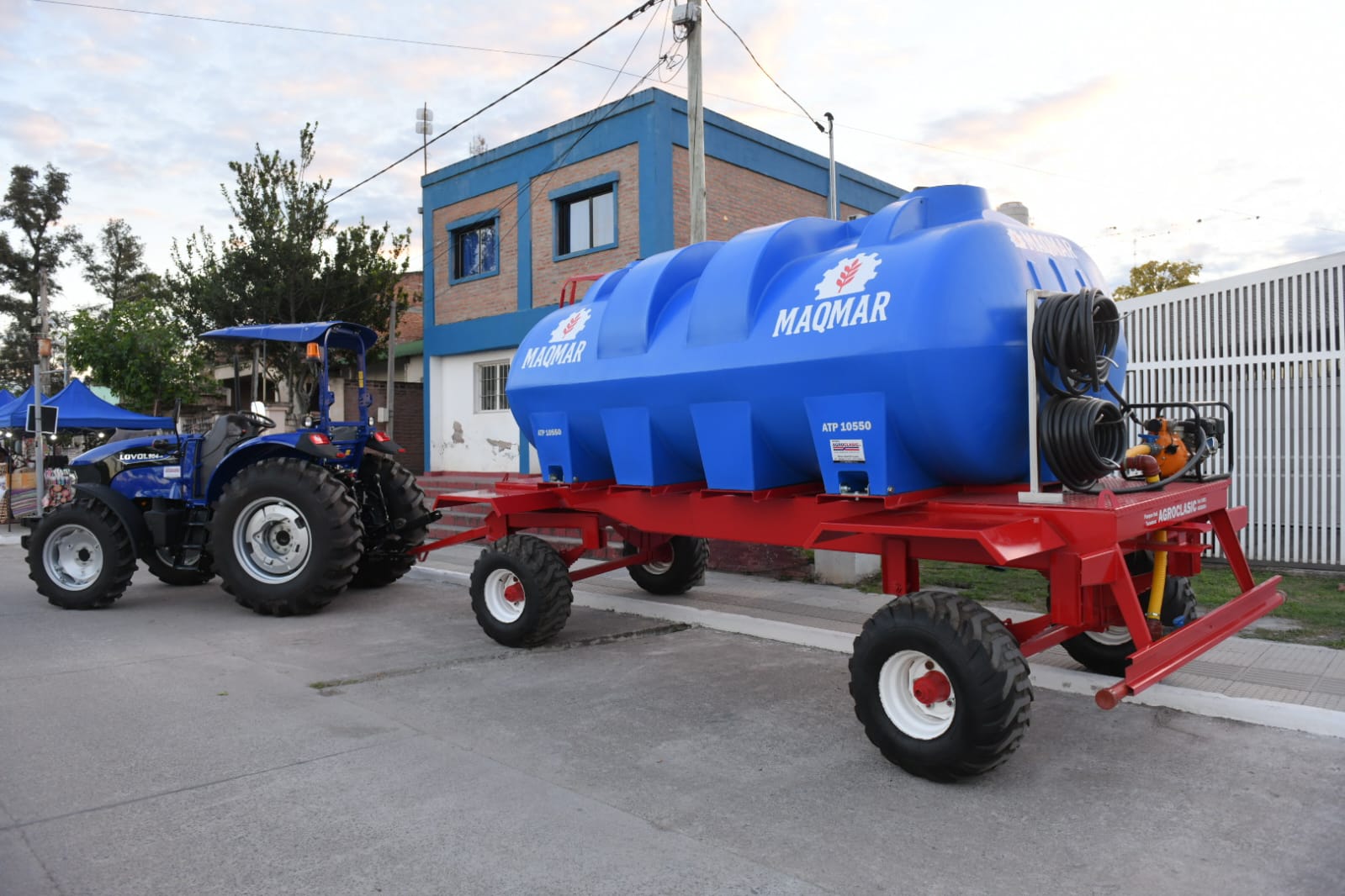 Las actividades comenzaron pasadas las 19 con la inauguración del Espacio de Convivencia Democrática, que contempló la modernización de 350 metros del edificio. Luego, las autoridades realizaron la entrega de un tractor H904 y un tanque acoplado de 10.500 litros, lo que amplió el parque automotor del municipio.