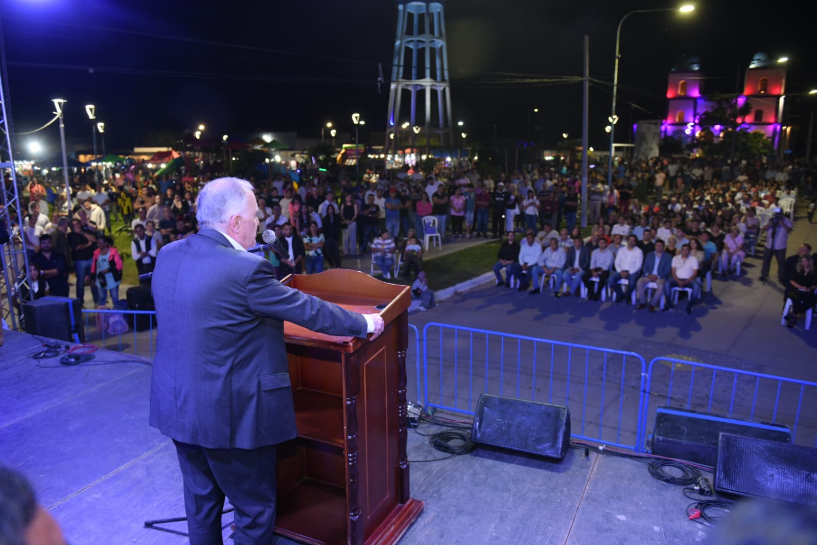 Además, indicó: “Y en un contexto realmente difícil, nosotros, como siempre, gracias a Dios, en cada aniversario del municipio lo festejamos con obras. Y hoy nosotros estamos modernizando este salón de más de trescientos cincuenta metros cuadrados, que va a ser utilizado para toda la comunidad. También la entrega de un tanque de agua y un tractor que va a servir para mejorar los servicios de los vecinos de esta ciudad, sino también para los vecinos del departamento y los delegados que así lo requieran. Simplemente es una noche emotiva, es una noche hermosa, es una noche donde hacer este tipo de obra en un contexto adverso, la verdad que nos llena de orgullo. Y agradecerle al gobernador por su predisposición y a la de cada uno de sus ministros para ayudar y colaborar con este municipio”.