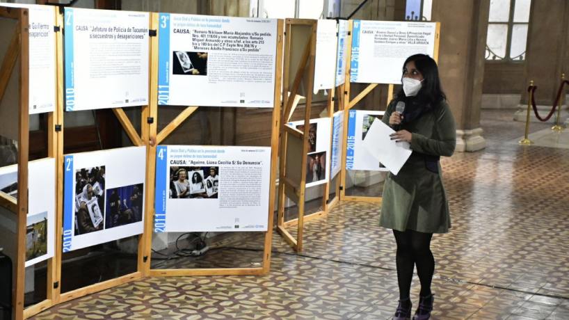 La Secretaría de Derechos Humanos y Justicia de la Provincia de Tucumán presentó esta mañana la muestra Juicios de lesa humanidad en la provincia de Tucumán. Reseñas de un recorrido histórico 2008-2021. Puede verse en la planta baja de Casa de Gobierno.