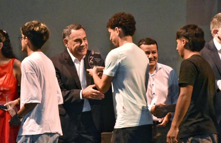 El ministro de Gobierno y Justicia, Regino Amado, encabezó la ceremonia realizada en el Teatro San Martín, donde se distinguió a jóvenes líderes de toda la provincia por su compromiso, talento y aporte a sus comunidades.