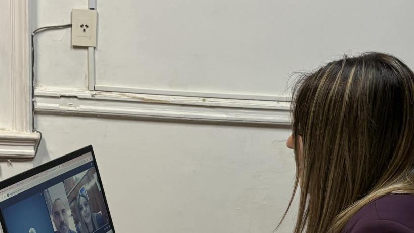 Intercambiaron agenda entre Tucumán y Buenos Aires en materia de culto. Aquí la secretaria Roxana Díaz dialogando de forma virtual con su par de Buenos Aires.