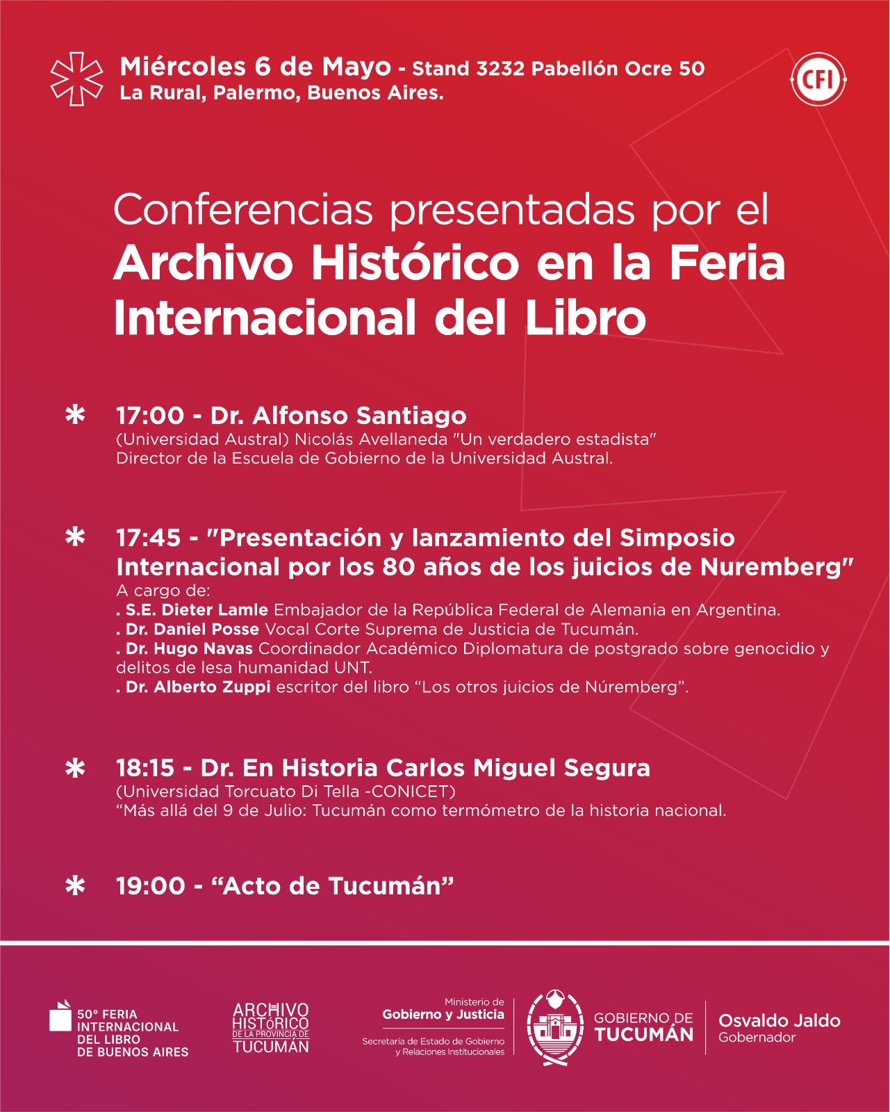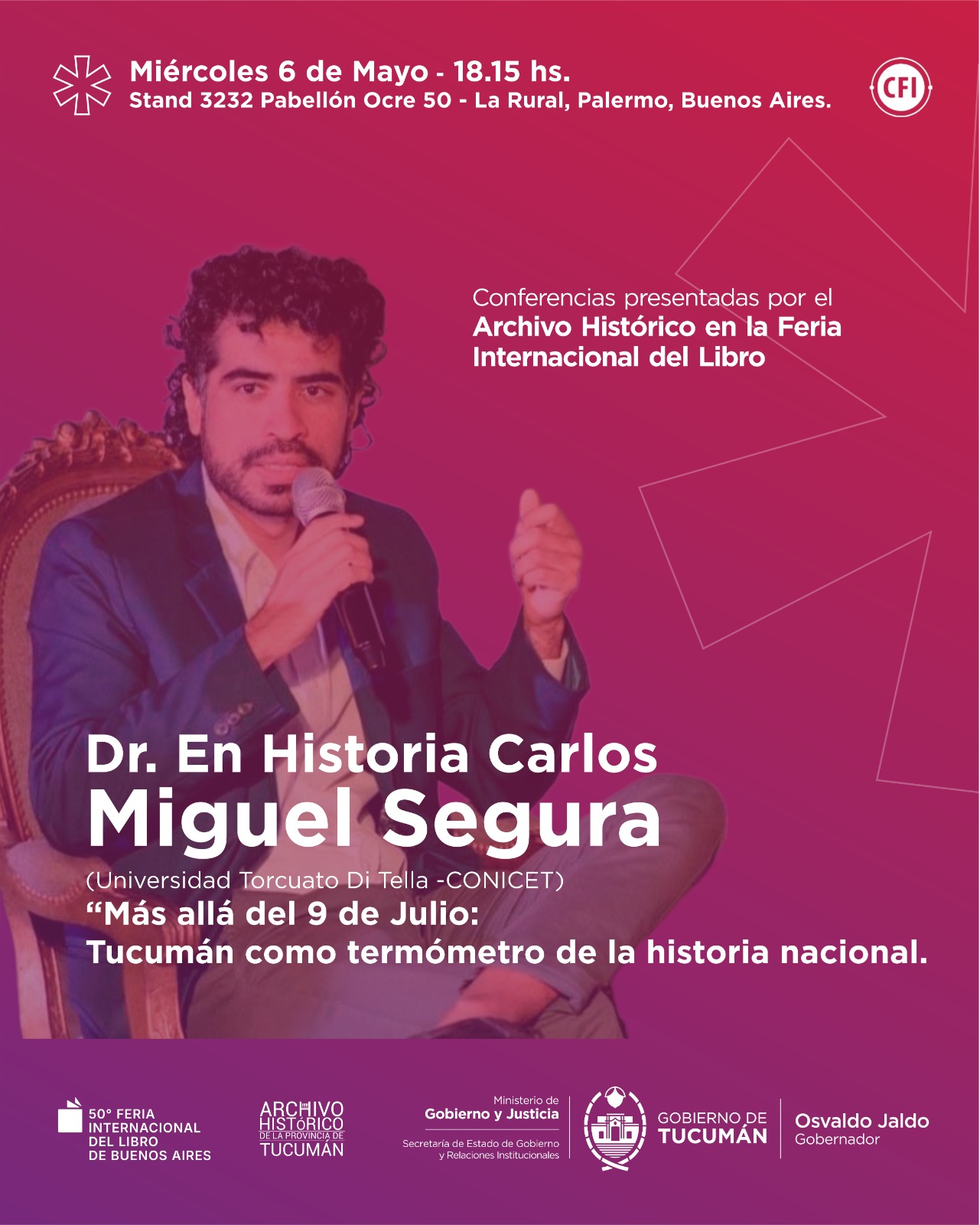 El Gobierno de Tucumán participará el 6 de mayo en la 50° Feria Internacional del Libro de Buenos Aires con una agenda de conferencias organizada por el Archivo Histórico de la Provincia.