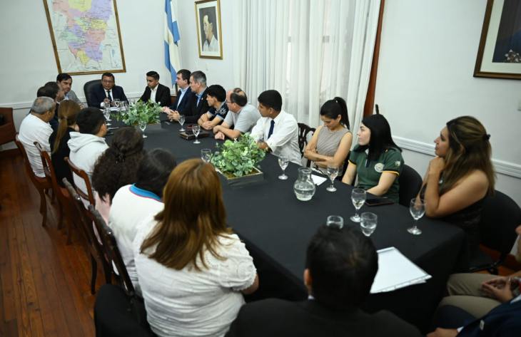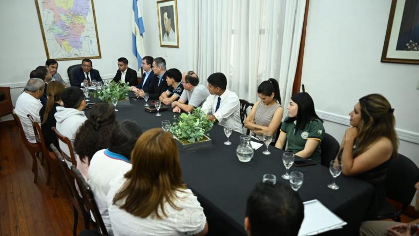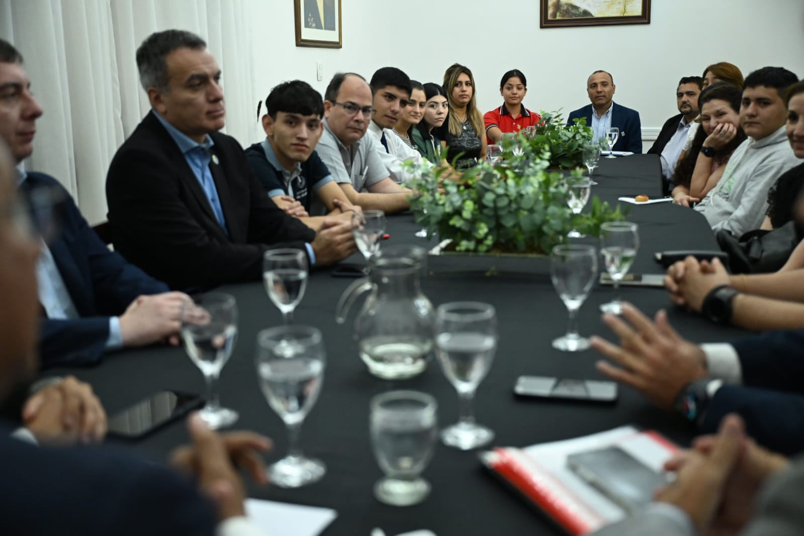 El ministro de Interior, Darío Monteros, fue el responsable de ultimar los destalles para los viajes al recibir esta mañana, en Casa de Gobierno, a los estudiantes. Del encuentro participaron también el secretario de Deportes, Diego Erroz; el subsecretario de Deportes, Maximiliano Germán; Ignacio Rodríguez, supervisor de Educación Técnica; y el comisionado comunal de Gobernador Piedrabuena, Lautaro Apestey.