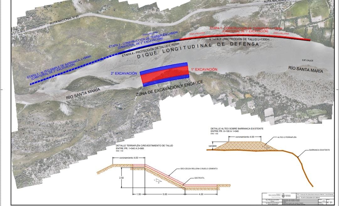 El objetivo central de la intervención es mitigar el riesgo de inundaciones que afectan históricamente a la población local y que representan una amenaza para la conectividad de la Ruta Nacional N°40. La obra, a cargo de la Dirección Provincial del Agua (DPA), no solo busca la solución ingenieril, sino que se ha diseñado priorizando el menor impacto ambiental y la integración comunitaria. Para ello, se integraron estudios antecedentes con un relevamiento fotogramétrico de alta precisión y se elaboró un modelo hidráulico 2D, lo que permitió evaluar múltiples alternativas y seleccionar la más eficiente.