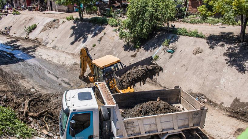 El Ministerio de Obras, Infraestructura y Transporte Público trabaja en el saneamiento del cauce para optimizar el escurrimiento del agua y prevenir anegamientos en beneficio de los vecinos de la zona.