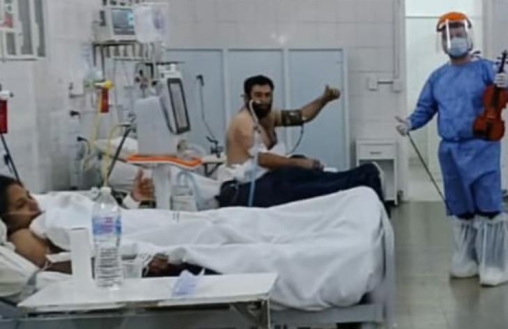 "Siempre me apasionó la música; a mí y a mi familia. Cuando voy tocando canciones de folclore o tango con mi violín, lo que quiero es transmitir un poco de alegría para que los pacientes salgan de esa soledad de la internación. Antes lo hacía en la unidad de Coronaria y ahora en la unidad de Terapia COVID, donde las personas están solas y aisladas de sus familiares. Allí estamos los enfermeros, a la par de ellos siempre”, contó el licenciado.