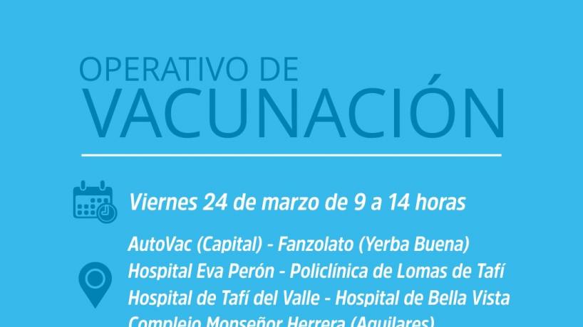 Desde el ministerio de Salud, a cargo del doctor Luis Medina Ruiz, se informa a la población cuáles serán los nodos habilitados para la inmunización este viernes feriado.