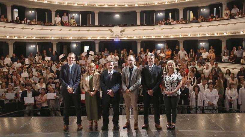En la misma línea, Sánchez destacó la importancia del evento y el esfuerzo que implica el sistema de residencias: “La colación de residentes es un acto central para nosotros. Culmina tres, cuatro o incluso cinco años de formación en un sistema muy exigente, con programas de dedicación exclusiva y jornadas extensas. Este esfuerzo requiere fortaleza y compromiso. Para el sistema provincial de salud, es fundamental ofrecer esta cantidad y calidad de residencias, ya que formamos especialistas que luego enriquecen nuestro sistema y asisten a los pacientes, que son el centro de todo nuestro trabajo.”