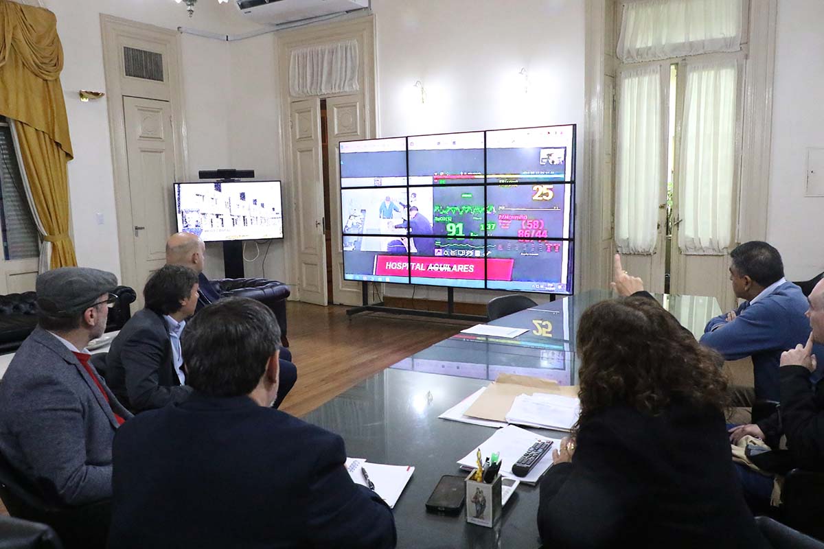 El responsable de la cartera Sanitaria doctor Luis Medina Ruiz, acompañado del subsecretario doctor Marcelo Montoya, la directora de Informática y Comunicaciones ingeniera Beatriz Gauna y el Ingeniero Javier Toledano dialogaron con las autoridades del servicio satelital.