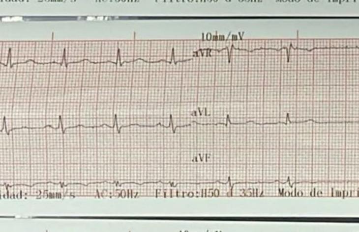 Ante la sospecha clínica el médico de guardia, doctor Henry Chávez, se realizó la evaluación primaria con electrocardiograma y se contactó con el cardiólogo del programa, doctor Manuel Cata, quien confirmó el diagnóstico de IAM inferior e indicó derivar de urgencia al Hospital de Alberdi para realizar terapia de reperfusión. El paciente fue trasladado y arribó a dicho efector a las 00:10 horas, donde fue recibido por los doctores Nicolás Abdala y Daniel Suárez.