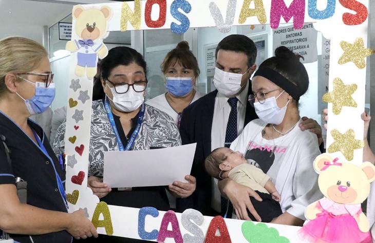 El ministro de Salud Pública, Luis Medina Ruiz, acompañó a la familia de Noah que tras meses de internación recibió la tan esperada alta médica de Neonatología del Instituto de Maternidad “Nuestra Señora de las Mercedes”.