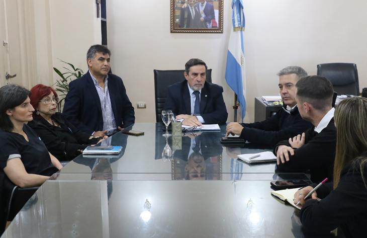 El ministro de Salud Pública, doctor Luis Medina Ruiz, recibió al referente provincial del Consejo Federal de Inversiones (CFI), Pedro Sandilli; al referente regional del organismo, Pablo Sanzhan; y al subdirector técnico del Hospital Virtual, doctor Sebastián Vega.