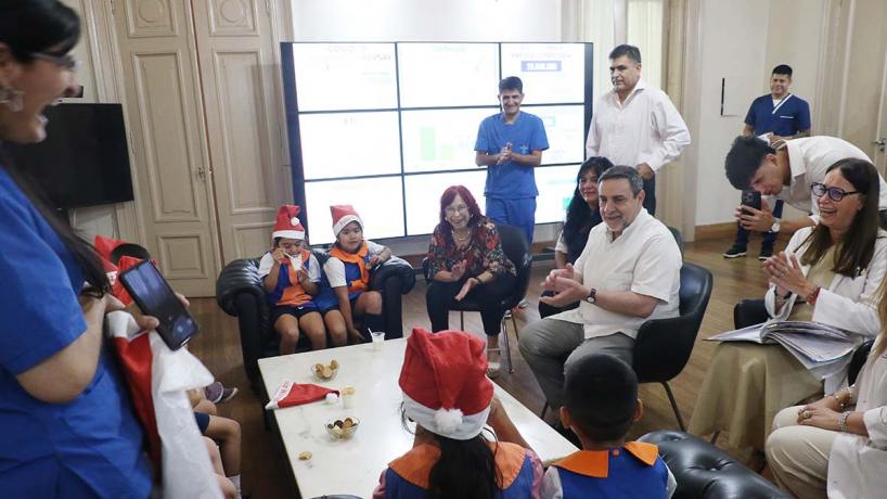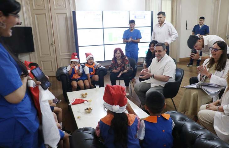 “Los niños, con mucha alegría, están recorriendo Casa de Gobierno, luego irán a Casa Histórica, y se los ven muy entusiasmados promoviendo la salud. Es muy importante que comencemos a tener una vida saludable desde niños, porque en realidad el futuro y el presente está en ellos”, aseguró.