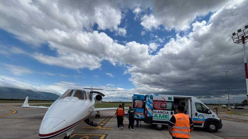 Luego de finalizar los retornos previos, la aeronave sanitaria se dirigió a Catamarca para efectuar el traslado del paciente, quien permanecía internado en el Hospital Interzonal San Juan Bautista con diagnóstico de shock séptico de segundo grado, pancreatitis aguda e insuficiencia renal aguda. Ante este cuadro clínico, se gestionó de manera inmediata una cama en la Unidad de Cuidados Intensivos 2 del Hospital Ángel C. Padilla, centro de referencia provincial en la atención de patologías de alta complejidad.