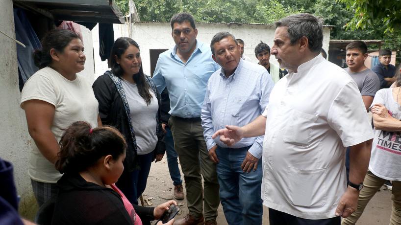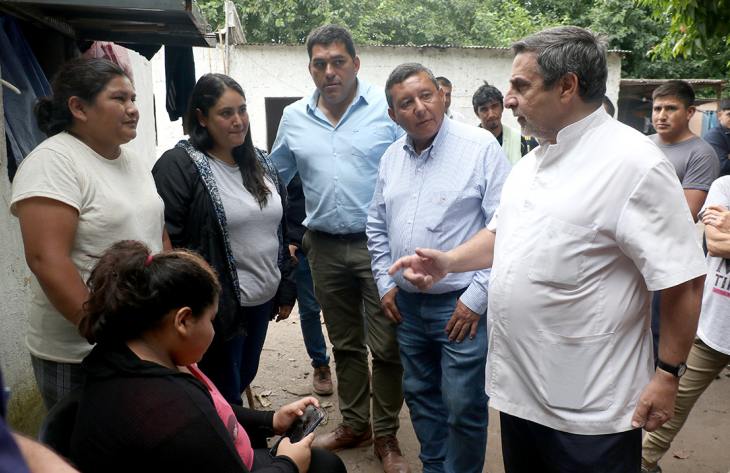 El ministro de Salud Pública, doctor Luis Medina Ruiz, junto a su par del Interior, Darío Monteros, y al de Obras, Infraestructura y Transporte Público, Marcelo Nazur, recorrieron la localidad de García Fernández para asistir a familias afectadas por las tormentas.