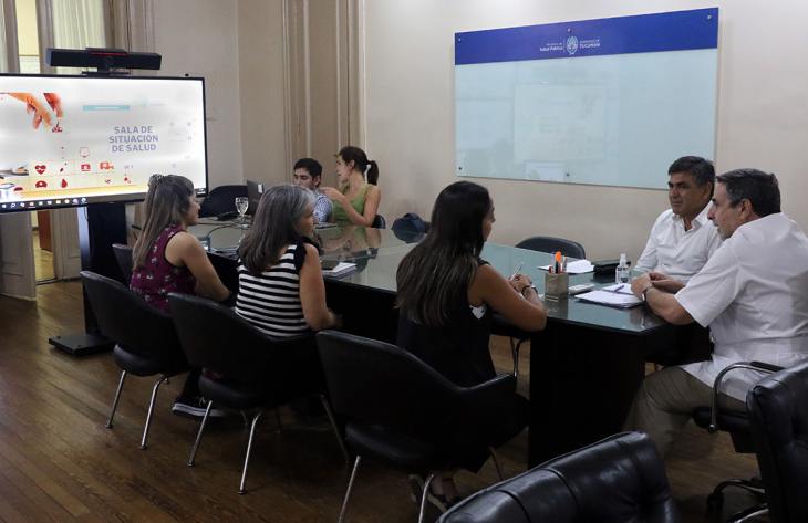 El ministro de Salud Pública, Luis Medina Ruiz, encabezó una nueva sala de situación junto al subsecretario de Salud, Marcelo Montoya, y el equipo de epidemiología, donde se evaluó el escenario epidemiológico de la provincia, el país y la región. La jornada permitió actualizar datos sobre dengue, chikungunya, sarampión e infecciones respiratorias, y reforzar las estrategias de prevención y vacunación.