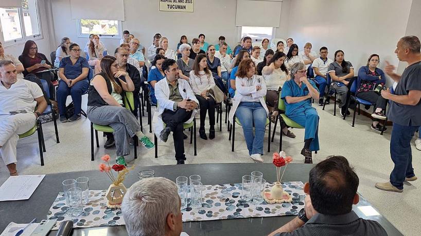 En el SUM del hospital del Niño Jesús se realizó una jornada de capacitación destinada al personal del área quirúrgica sobre el manejo de tejidos para trasplantes pediátricos, organizada junto al CUCAITUC.