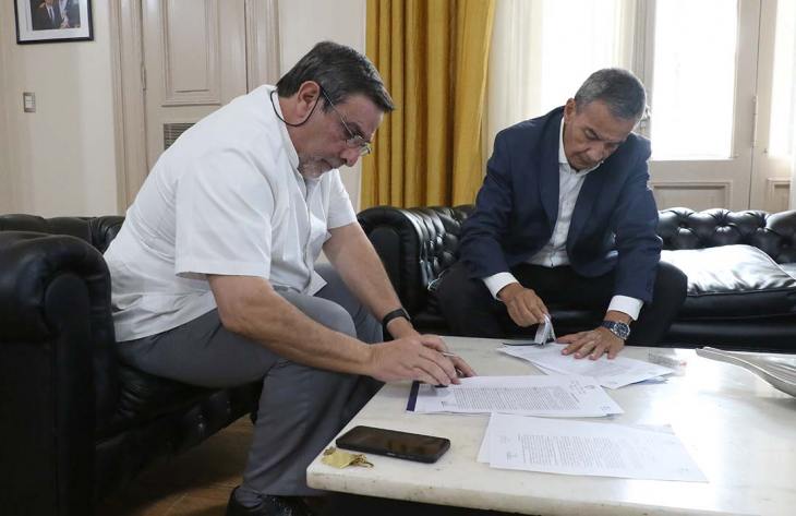 En una acción articulada entre distintas áreas del Estado provincial, el ministro de Salud Pública, doctor Luis Medina Ruiz, recibió al secretario de Estado de Producción, Eduardo René Castro, con quien concretó la firma de un acuerdo de comodato por 30 años que permitirá la cesión de un inmueble ubicado en el predio ferial para uso sanitario.