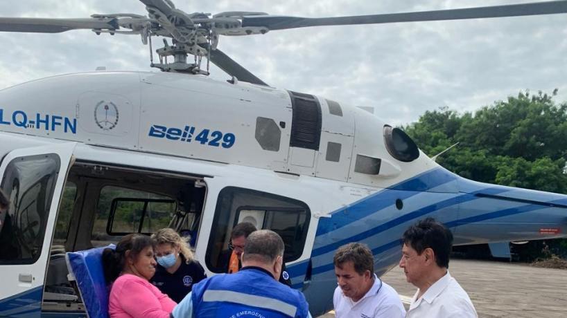 Posteriormente, la paciente fue derivada hacia el helipuerto del 107 y desde allí trasladada al Hospital Centro de Salud, donde continuó su atención en un centro de mayor complejidad.
