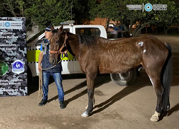 Ya en San Miguel de Tucumán, un equipo de la División Delitos Rurales Y Ambientales N° 6 Capital intervino en una situación de maltrato animal y procedió al rescate de un caballo zaino colorado que estaba tirando de un carro, el equino presentaba severos signos de maltrato y desnutrición por este motivo se procedió a su secuestro.
