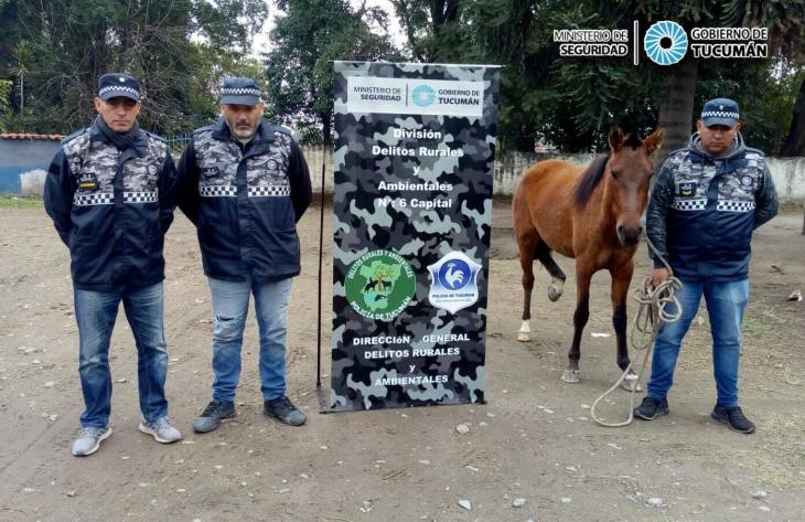 Personal de la División de Delito Rurales y Ambientales N° 6 Capital, incautó a un equino que estaba suelto por el Noroeste de la Provincia. Con el objetivo de brindar seguridad en las zonas rurales de la ciudad de Tafí viejo, este martes, efectivos que se encontraban realizando recorridos preventivos, observaron en avenida Del Perú Sud al 4000, a una yegua que deambulaba suelta sin su dueño, poniendo en riesgo a los automovilistas que circulaban por el lugar.
