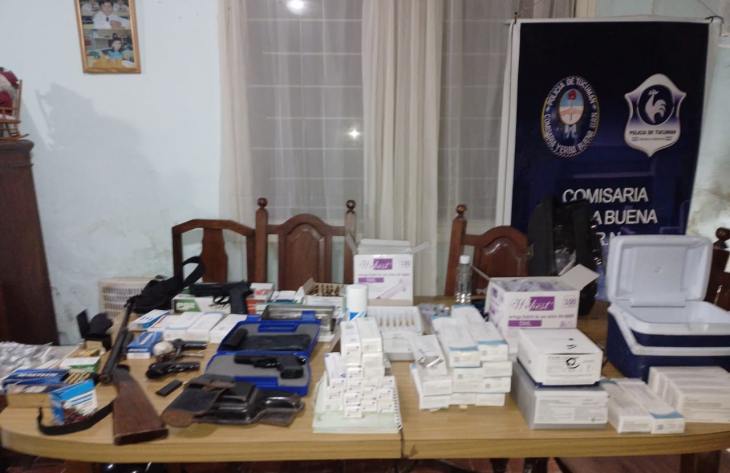 Cinco armas de fuego, una gran cantidad de vacunas contra el Covid y el Dengue, recetas y certificados de defunciones fueron secuestrados este lunes en el domicilio de un hombre de 55 años acusado de ejercer ilegalmente la medicina, luego de una intensa investigación realizada por los efectivos de la Comisaría de Yerba Buena.