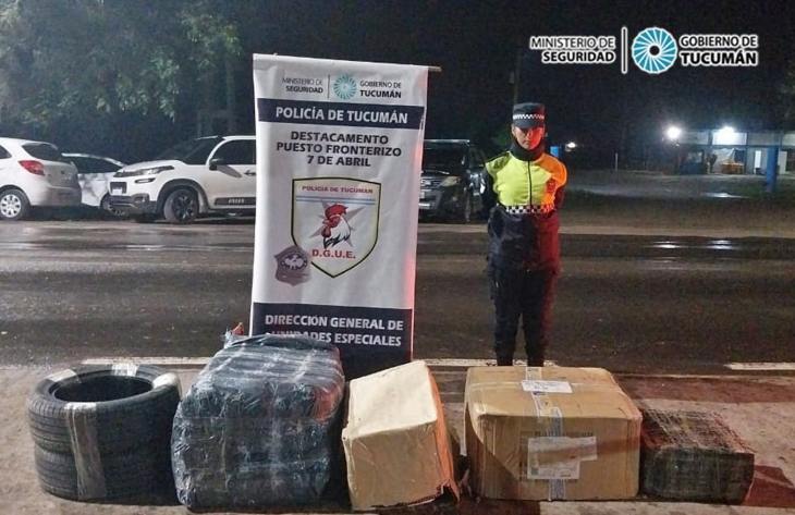 En la noche del miércoles, el personal policial del Destacamento Fronterizo 7 de Abril secuestró cinco kilos de hojas de coca, ocho neumáticos y 10 blíster de cigarrillos que eran transportados en un camión de carga, que no tenía aval aduanero. El camión perteneciente a una empresa de transporte tenía como destino la provincia de Buenos Aires.