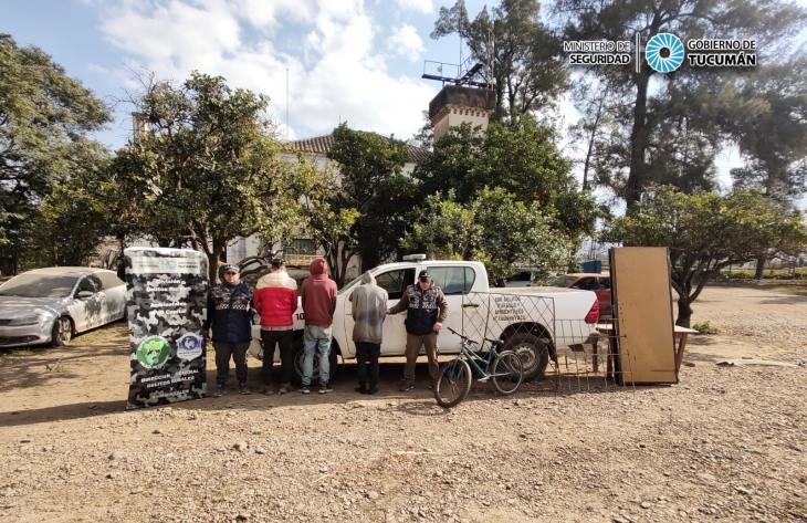 Ante esta situación, efectivos de la División Delitos Rurales y Ambientales n° 6 Capital llevó a cabo diversas averiguaciones por la zona, logrando divisar en horas de la mañana a tres hombres que trasladaban por avenida Francisco de Aguirre y calle Castelli, dos rejas de hierro, una puerta de madera y una bicicleta, pertenecientes a la víctima.