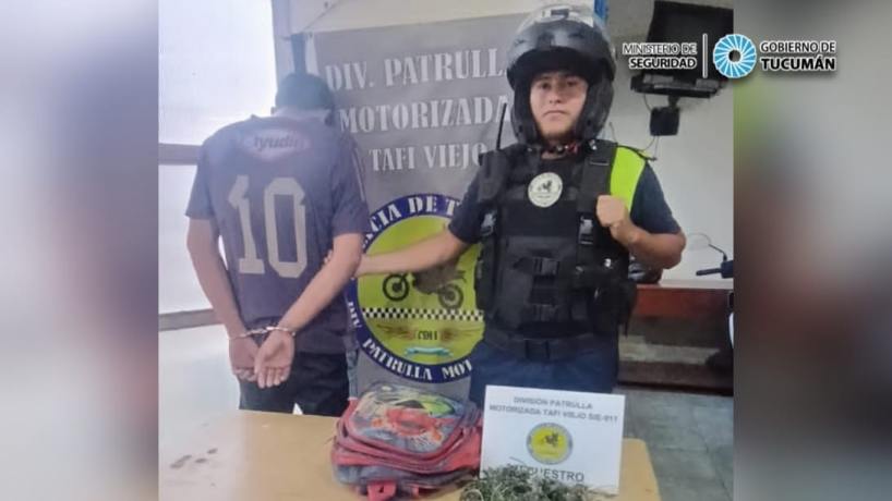 En horas de la tarde del martes, un equipo de la División Patrulla Motorizada Tafí Viejo observó en diagonal Norte y avenida Francisco de Aguirre a un joven con una mochila, transitando en actitud sospechosa por la zona, mirando detenidamente algunas casas.