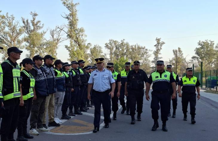 “Nos encontramos en el Palacio de los Deportes, lugar de concentración para el despliegue territorial de recursos compuestos por las unidades móviles de las comisarías de las cuatro zonas que integran la Unidad Regional Capital, como también la Guardia de Infantería Capital, la Guardia de Prevención Ciudadana, motoristas del 911, GEAM, DOM y efectivos de la Policía Vial”, detalló Orellana.
